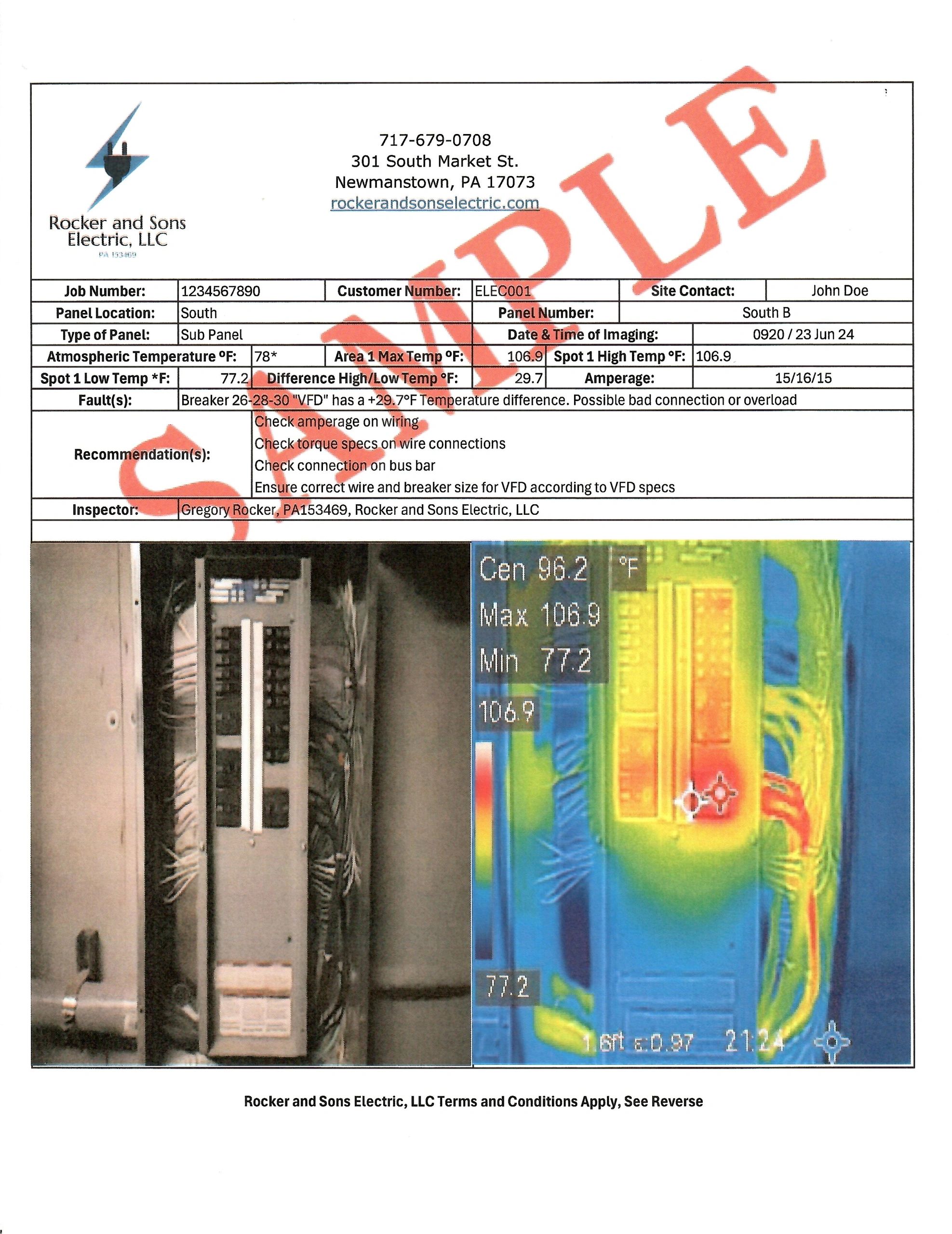 We offer reports with all Thermal Images within 10 business days like sample to the left. Call or email for more information.